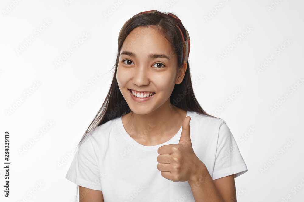 Good Job Well Done Charming Joyful Young Chinese Female Looking At Camera With Broad Cheerful Smile