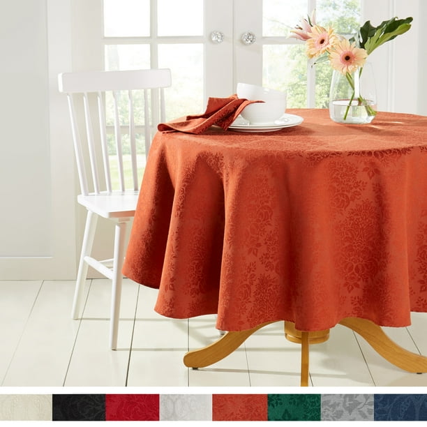 Town Country Living Lexington Damask Tablecloth Traditional Stain Resistant Machine Washable Cotton Polyester Blend 70 Round Rust Walmart Com